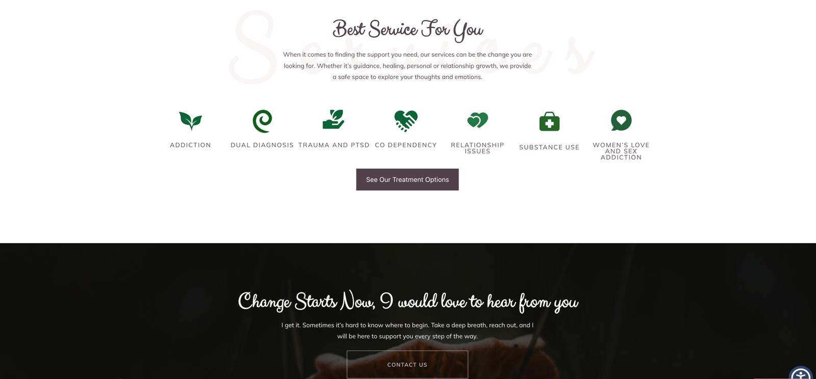 Design a calming and inviting website and logo that reflected her gentle, hopeful approach to therapy.
